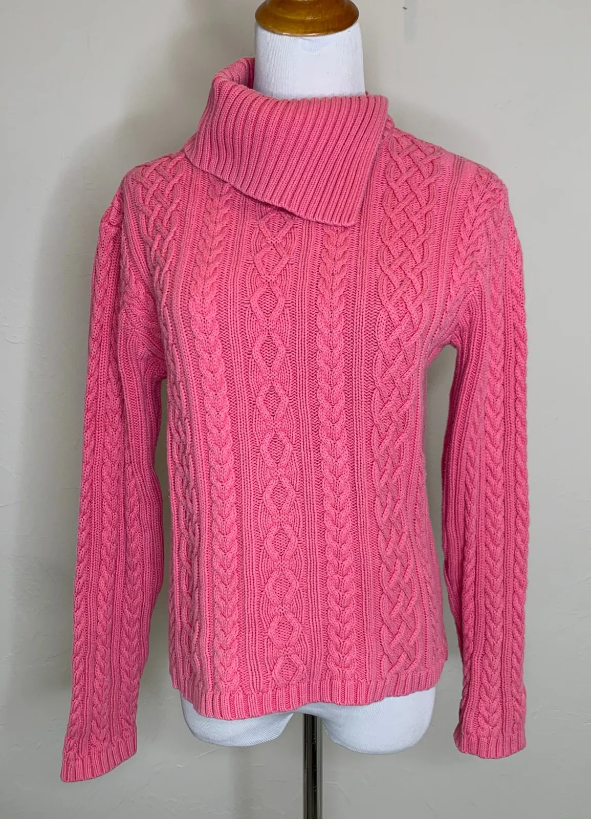 Vintage 90s Pink Cable Knit Foldover Collar Cotton Sweater no brand label or size tag I die, preppy... Show more