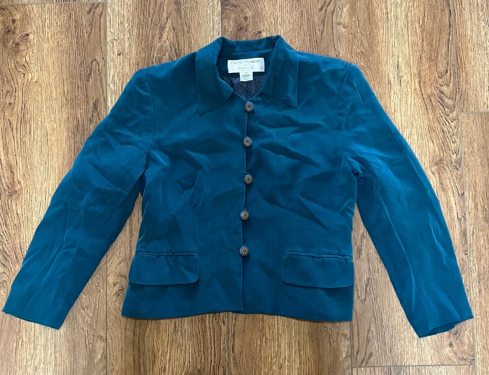 Excellent condition. 100% silk. Button up closure. Women's size 8 Petite. Shipping same day or next business day ALWAYS. Smoke free home. If you have any questions at all, do not hesitate to ask! *SKU 94* Vintage 90s Rena Rowan Saville blazer jacket silk jacket teal blazer Business Casual special occasion career workwear office luxury silk old money comfort classic retro petite blazer funky chic glam Keywords: silk blazer, petite blazer, teal jacket, business casual, workwear, sophisticated, tailored, classic, elegant, professional, evening wear, petite fashion, silk outerwear