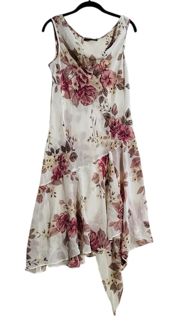 VTG 90s Sheer Beaded Sequin Floral Midi Dress Asymmetric WhimsiGoth Fairy Approx Size Large Approx.... Show more