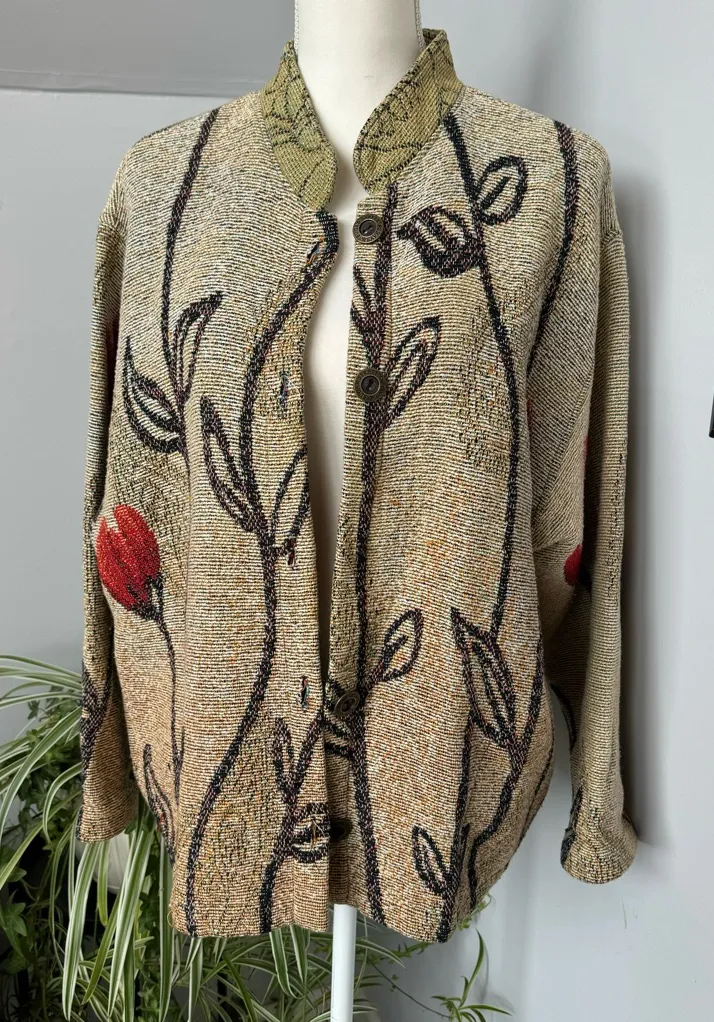 Vintage 90s Tapestry Jacket Floral Paisley Pattern Sugar Street‎ Weavers Large Tan - $95 - From Jennifer