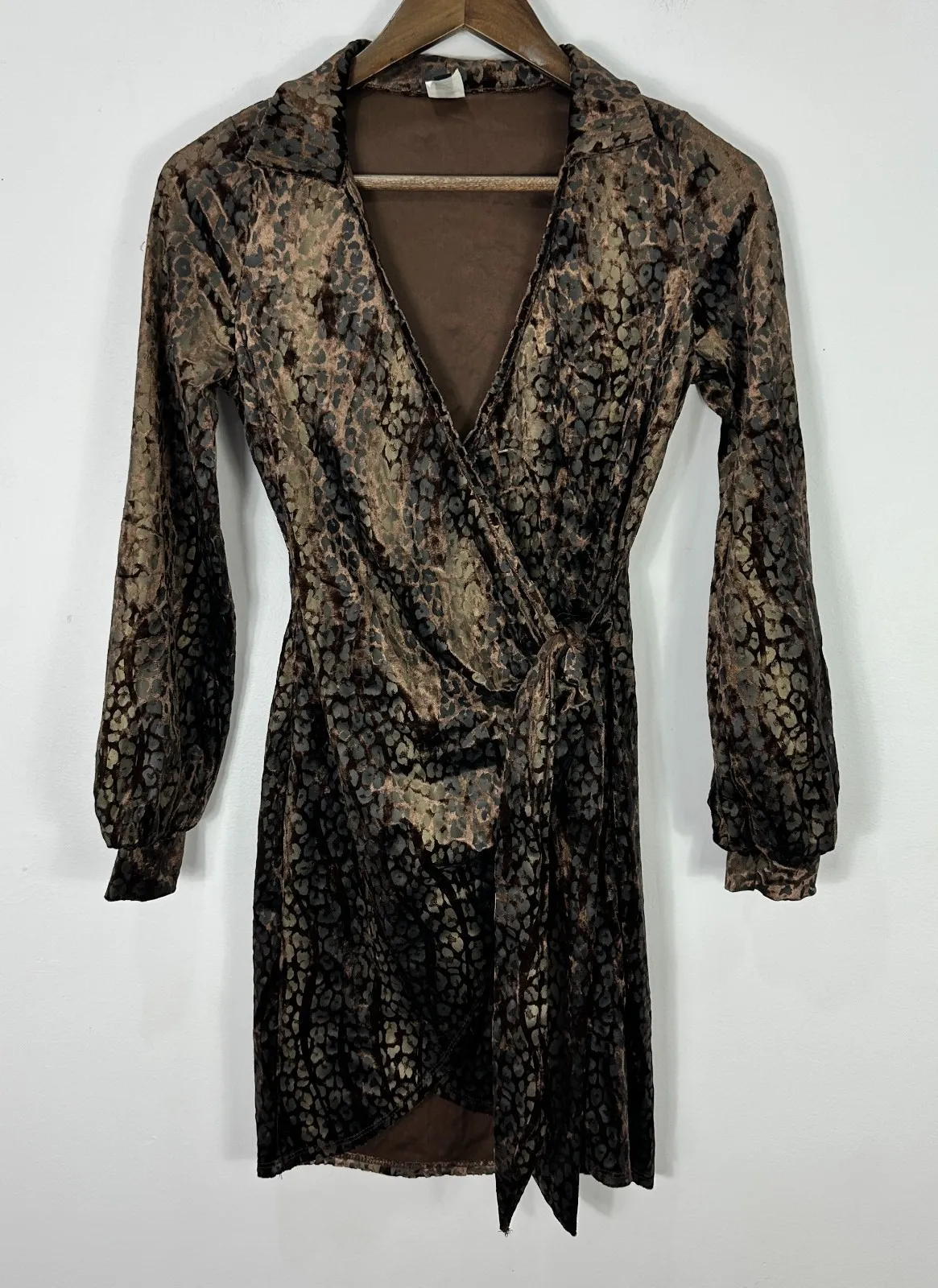 Vintage 90s Uptown J Wrap Dress M Brown Animal Print Velvet Y2K Boho Grunge Step out in true 90s st... Show more