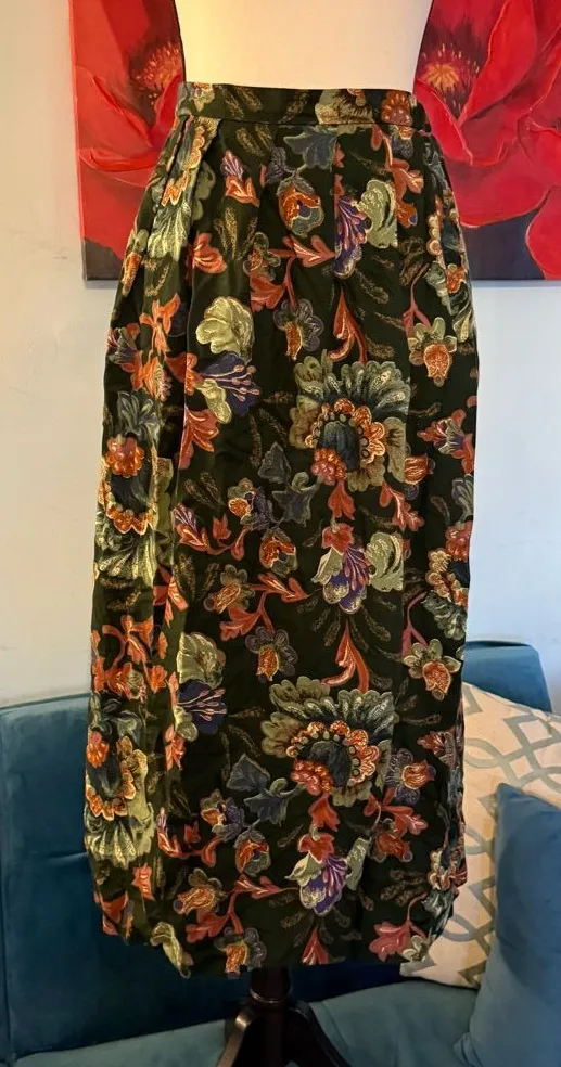 Vintage 90s USA ORVIS Women's Floral Pleated Skirt Autumn Shades Size 10/12 Orange - $25 - From T