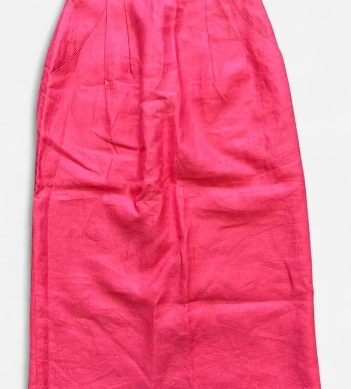 Vintage linen Valerie Stevens midi skirt in size 8, in a coral shade. 100% linen Two pockets Slit... Show more