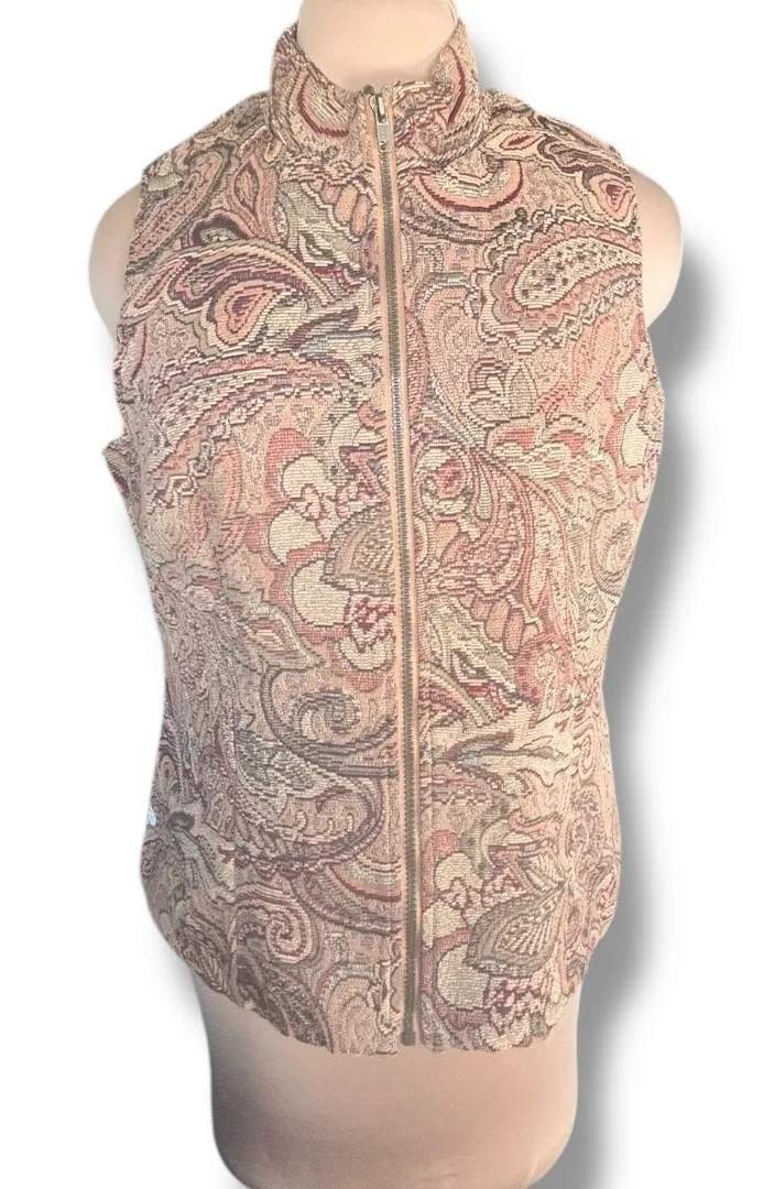 White Stag women’s vest Allover paisley tapestry pattern in shades of brown, rust, tan, and muted gr... Show more
