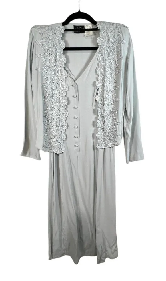 Embrace the timeless elegance of the 90s with the Wild Rose Blue Lace Button Tea Dress. A true original, this prairie-inspired piece is crafted from soft acetate, offering both comfort and durability. Designed for everyday wear, it features a delightful bohemian look with a classic tea dress silhouette that flatters any figure. The dress comes in a serene blue hue, size 10, and is tailored to fit regular size types. Made in the United States, it carries the authentic vintage appeal of the decade and is ideal for those who adore the cottage core aesthetic. Whether you're stepping out for a casual event or dressing up for a special occasion, this dress is a charming addition to your wardrobe. Measurements: Armpit to armpit-18 inches Waist-17 inches Length-50 inches