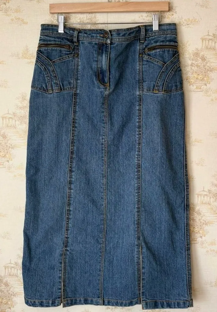 Vintage 90s y2k NoFuze utility paneled long denim maxi skirt Size L 35” waist, 42” hip, 33” length... Show more