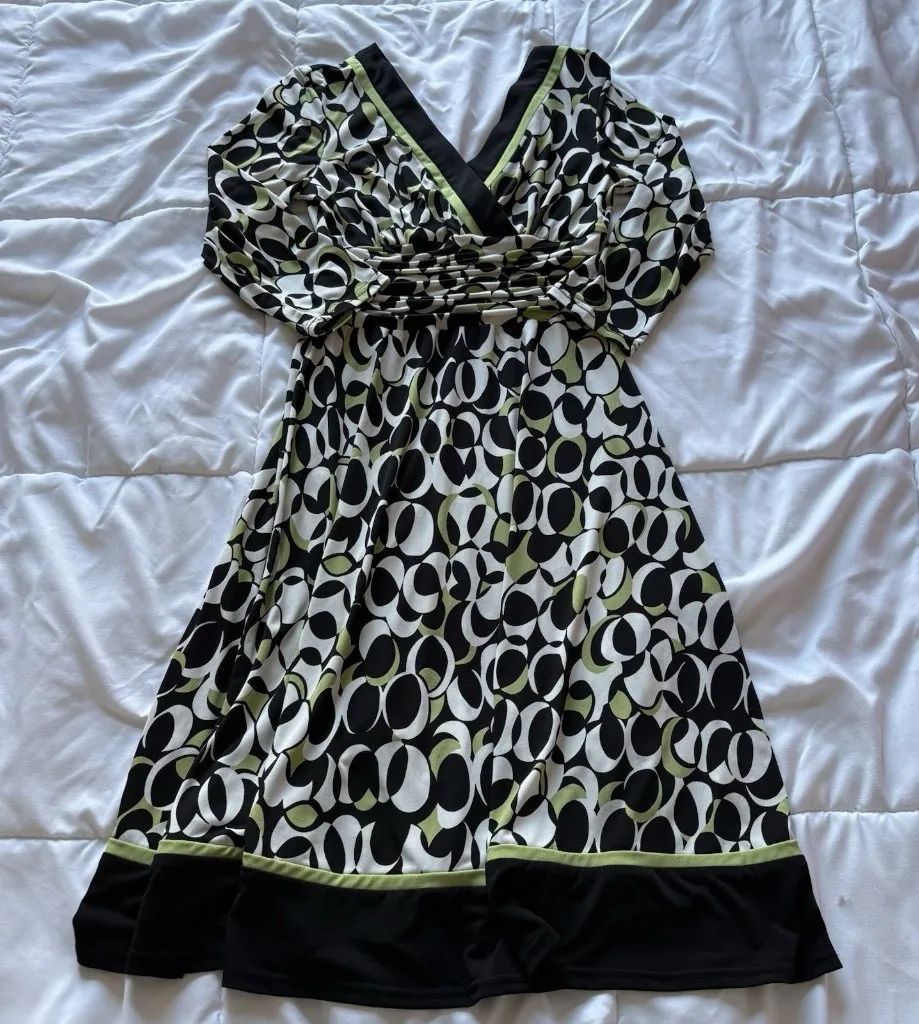 This Vintage 90s Y2K Women's Size 4P Coquette Dreamcore Fairy Whimsy Gothic Grunge dress by Sandro Darren features a Geometric pattern, 3/4 Sleeve, V-Neckline, and a Pullover closure. Excellent condition! Tags: vintage, 90s, Y2K, retro, 2000s, beach, summer, hippie, boho, party, club, vampire, gothic, grunge, coquette, dreamcore, fairy, whimsy, whimsical