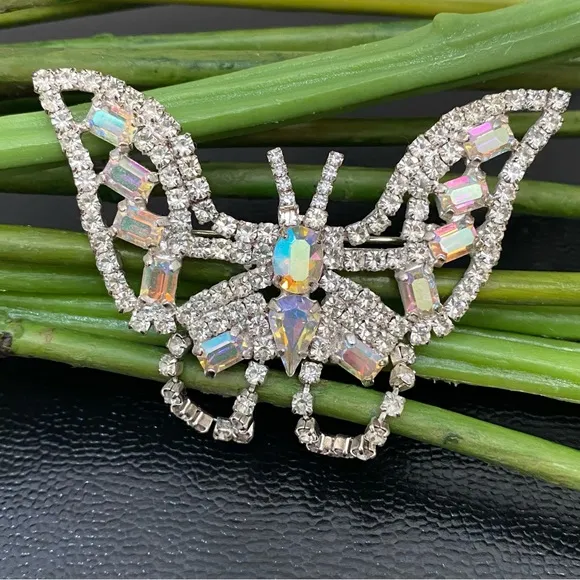 Vintage AB Crystal Rhinestones Articulated Bottom Silver-tone Butterfly Brooch. Unsigned. Pre-owned in great condition! See photos for details and measurements. You will get exactly as pictured! Weight: 14.5g Feel free to ask questions. All sales are final! NO returns. Thanks for looking.