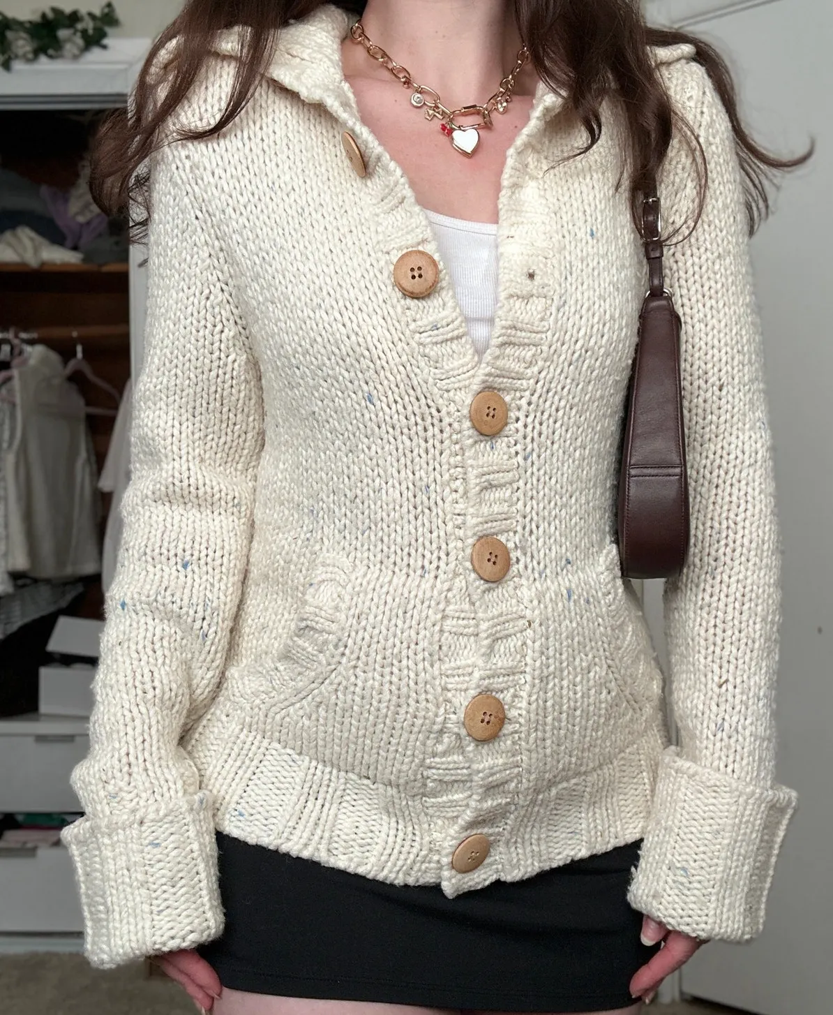 Vintage Abercrombie & Fitch Lambswool Knit Chunky Cardigan Sweater with Wood Buttons ✿ Make an offe... Show more