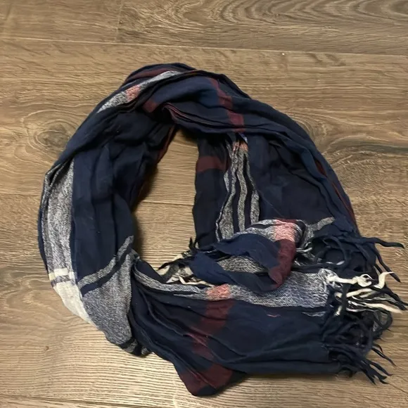 Vintage Abercrombie & Fitch Silk & Wool Navy Blue Maroon White Scarf 50% Wool 50% Silk