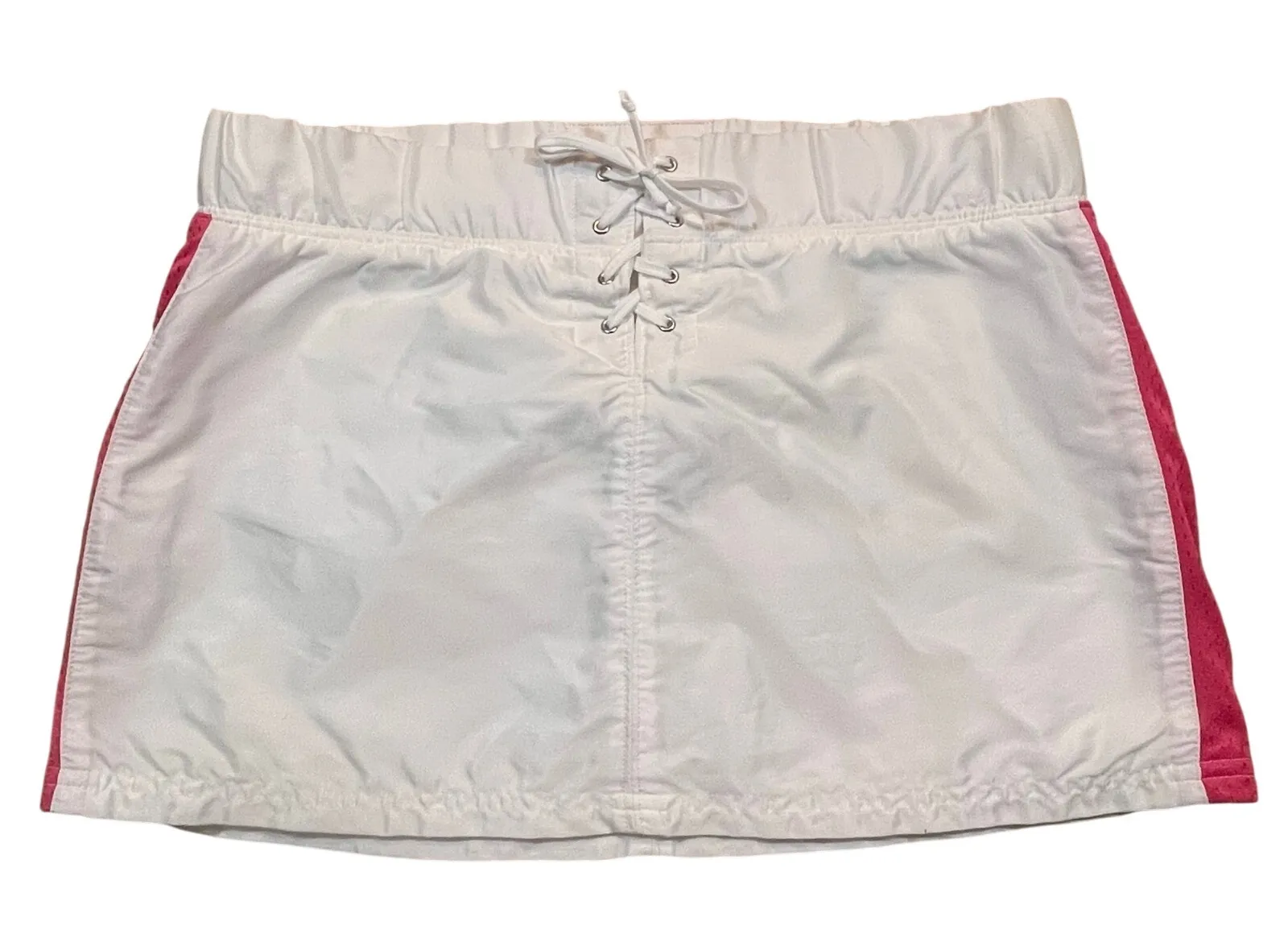 Abercrombie Gym Issue White Lace Up Nylon Mini Skirt Pink S Y2K Athletic