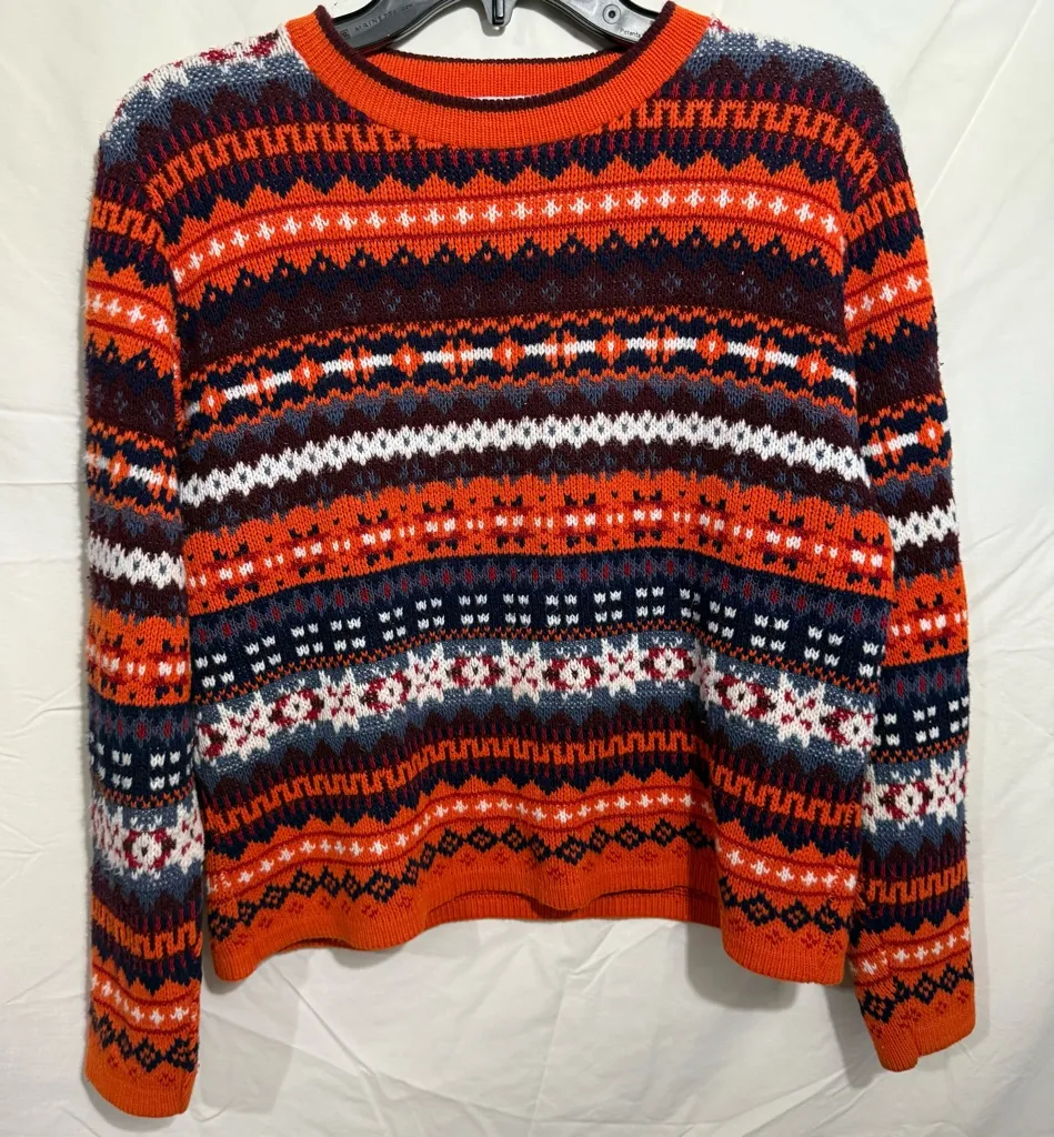 Vintage Adele Fair Isle Crew Neck Sweater in Orange and Navy Made in USA Size L - $30 - From Stefanie