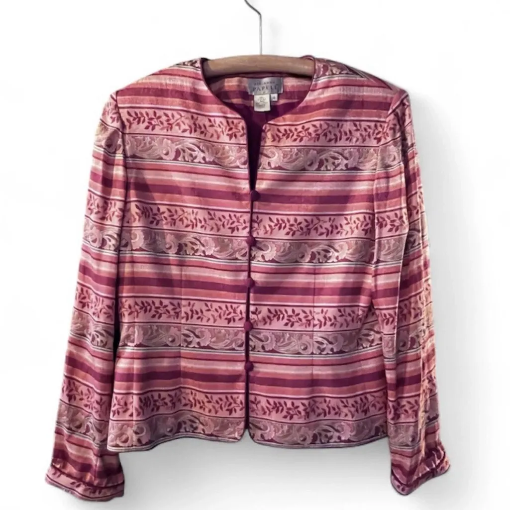 Vintage Adrianna Papell 100% Silk Jacket 14 Holiday Jacket Vibrant Coral / Pink / Red. Condition is... Show more