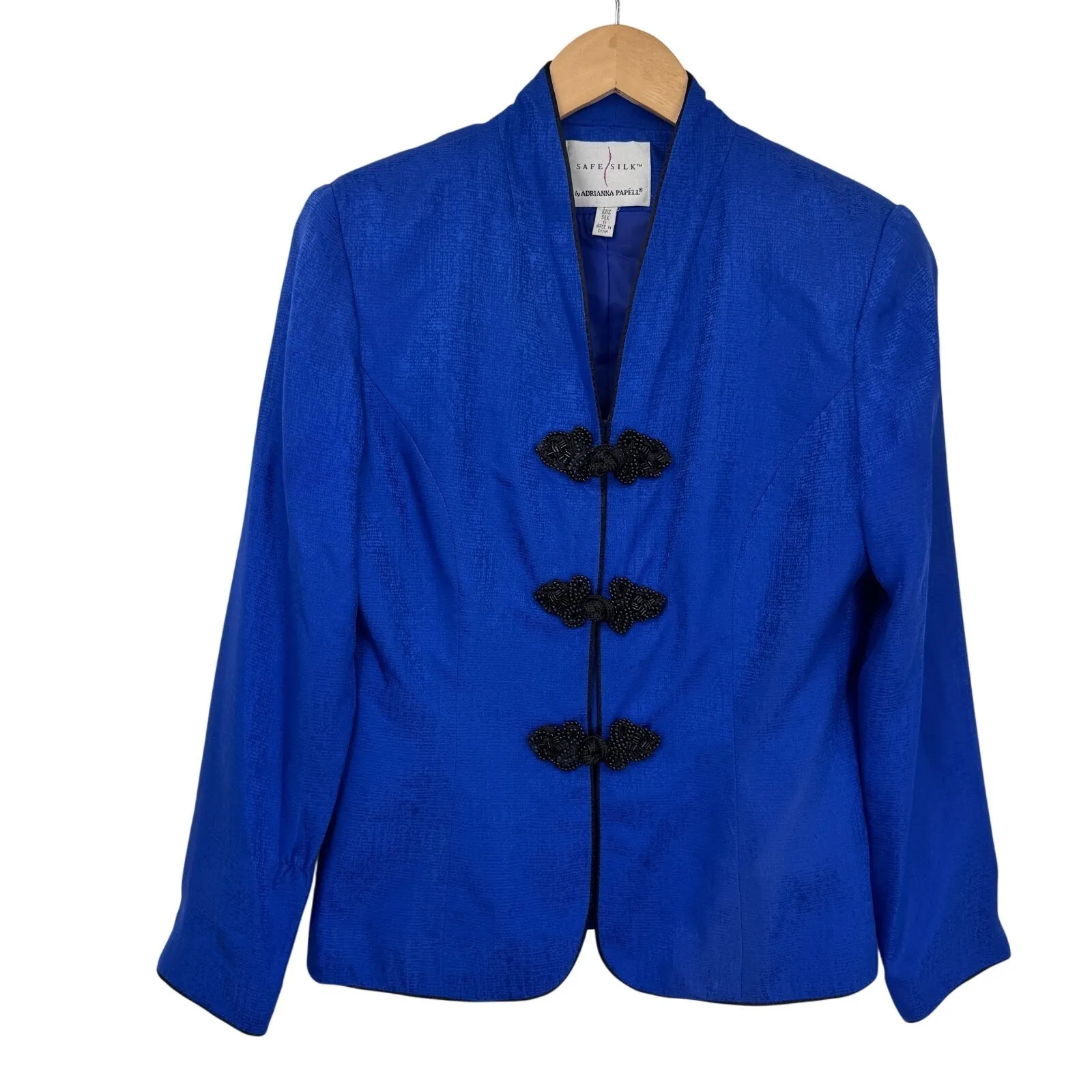The Vintage Adrianna Papell Silk Jacket in blue and black is a stylish and versatile piece perfect f... Show more