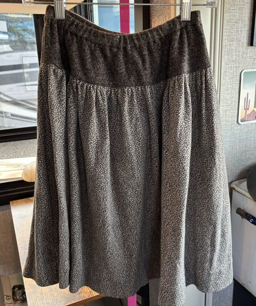 Elegant midi skirt with a textured pattern. Features a comfortable waistband. Perfect for versatile styling. This skirt is so cute. Has a nice wheat to. It has a gorpcore vibe. Sourced in Sedona, Arizona. The weight is a midweight hundred percent cotton.. excellent shape comes from a non-smoking hypoallergenic pet friendly RV LIFE singer lady :)