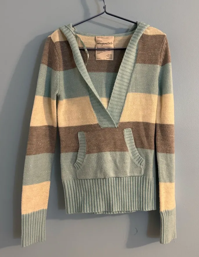 Vintage Aeropostale blue, grey and cream striped hoodie sweater size M Size M - $25 - From Reegan