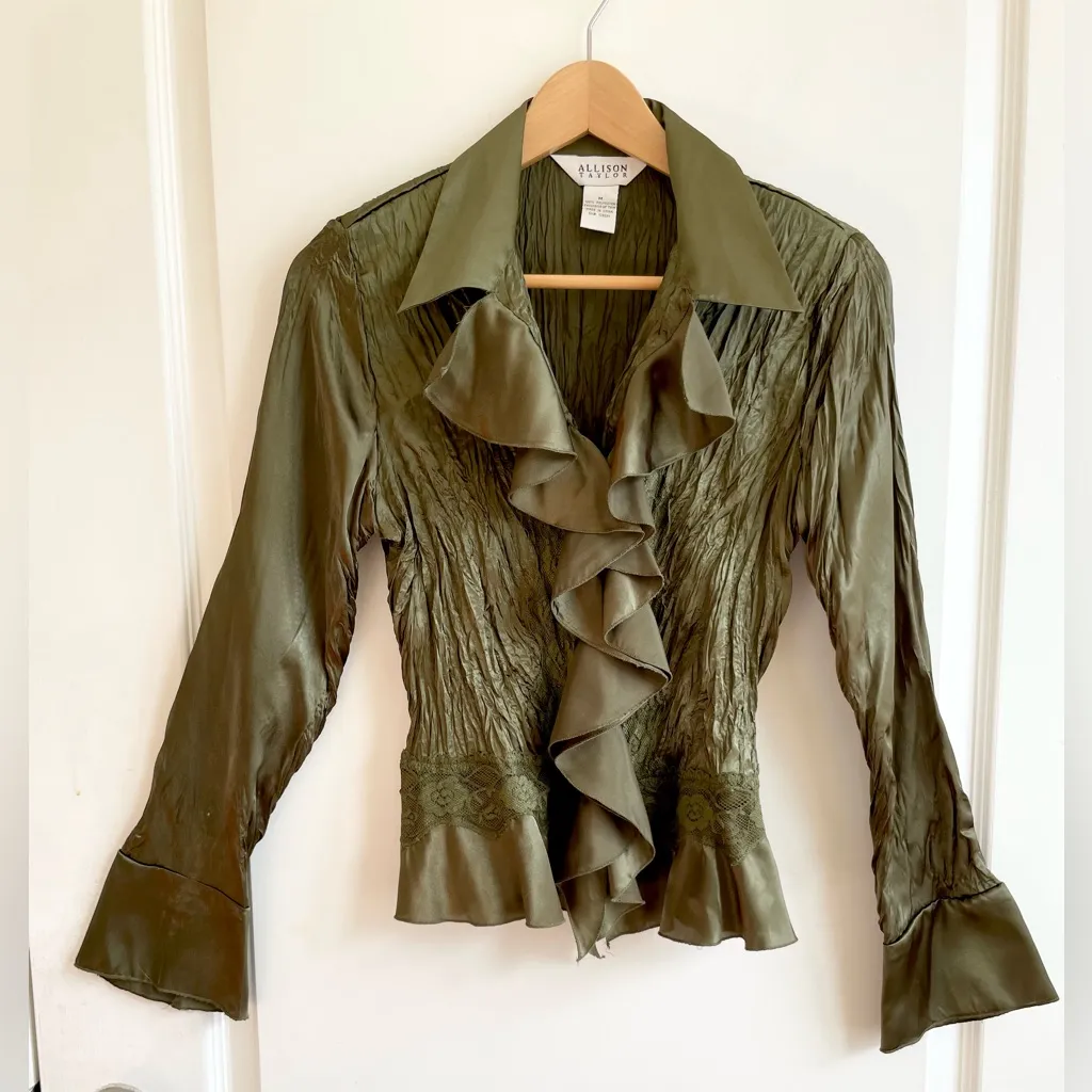 Vintage Allison Taylor Crinkle Lace Top Flare Sleeve Size M Y2K Avant Garde Green Size M - $40 - From Yosh