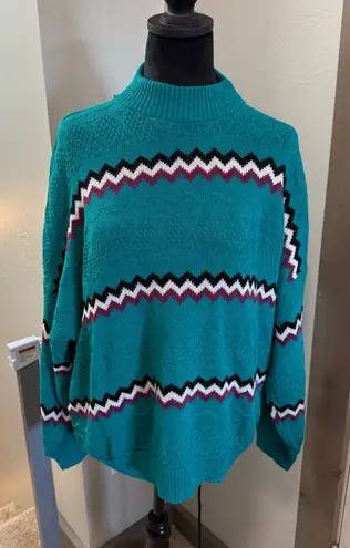 Vintage American Pride Mock Neck Turquoise Geometric‎ Stripe Knit Sweater Granny Blue Size undefined - $22 - From Abbey