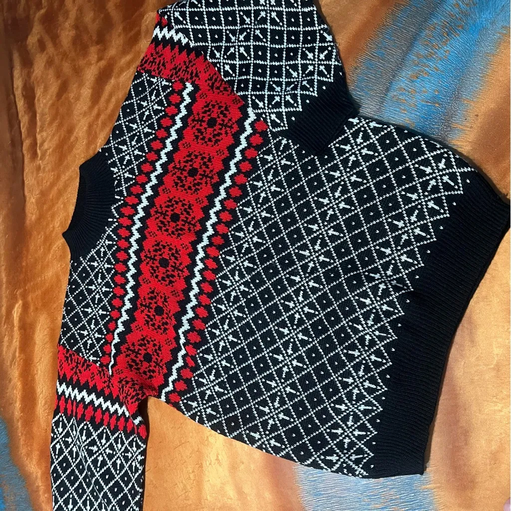Vintage American Pride Nordic Print Sweater Large USA Black red white acrylic - $30 - From Magnolia