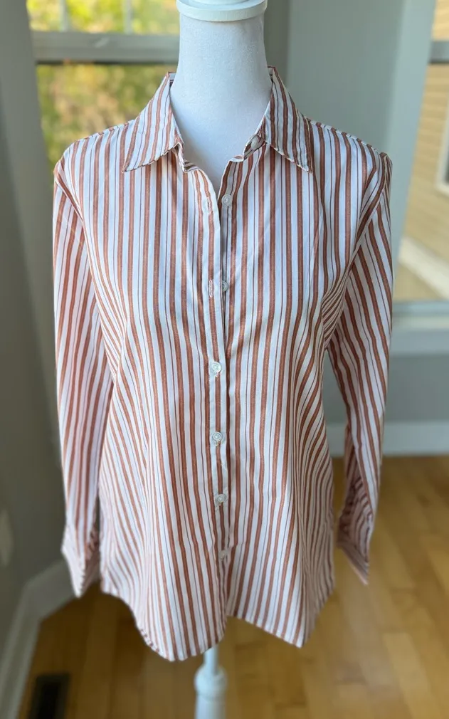 Vintage America’s Sweetheart Orange White Striped Cotton Button Down Dress Shirt - $25 - From Katie