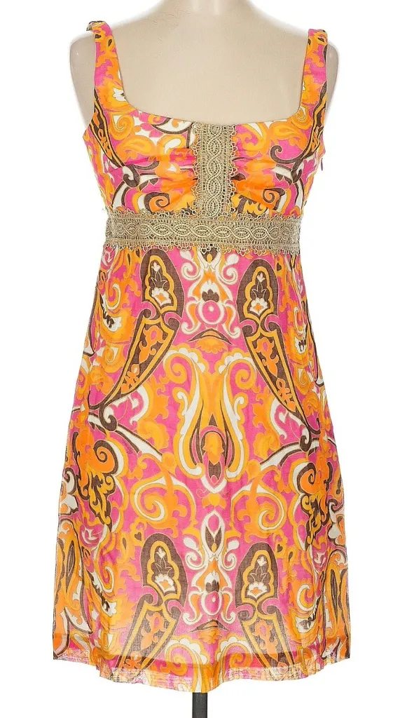 Vintage An Original Milly of New York Y2K Pink Gold Metallic Cotton Dress Size 6 Orange - $60 - From Marianne