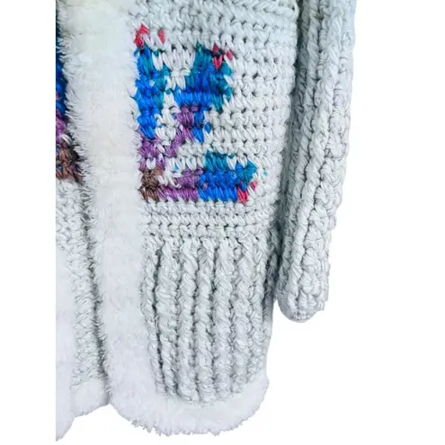 Step back in time with our Vintage Andriano 1970's Chunky Knit Cardigan. This oversized, bohemian hippie sweater is the perfect blend of style and comfort. Made from high-quality materials, it features a chunky knit design that exudes a vintage vibe. The cardigan is perfect for layering over any outfit, making it a versatile addition to your wardrobe. Its unique and eye-catching pattern adds a touch of personality to any look. Stay warm and stylish this season with our Vintage Andriano cardigan. - Oversized fit - High-quality materials - Unique chunky knit design - Versatile for any outfit Sizing tag is missing but it fits more like a size medium/Large. Please see measurements. Measurements: Chest: This is an open front style but if I were to measured it would be around 19" give or take. Length: 31" Color: Coloring on this is more like a light cream. #vintagefashion #bohochic #hippiestyle #chunkysweater #oversizedcardigan