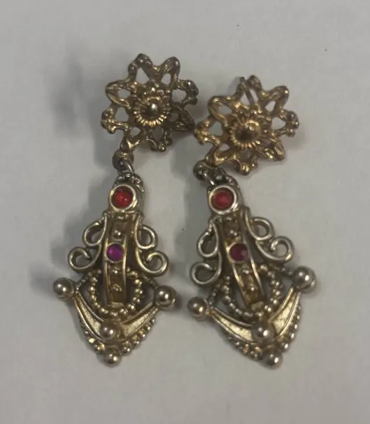 Vintage Antique Chandelier Earrings Red Purple Stone Victorian Era Style - $30 - From Melissa