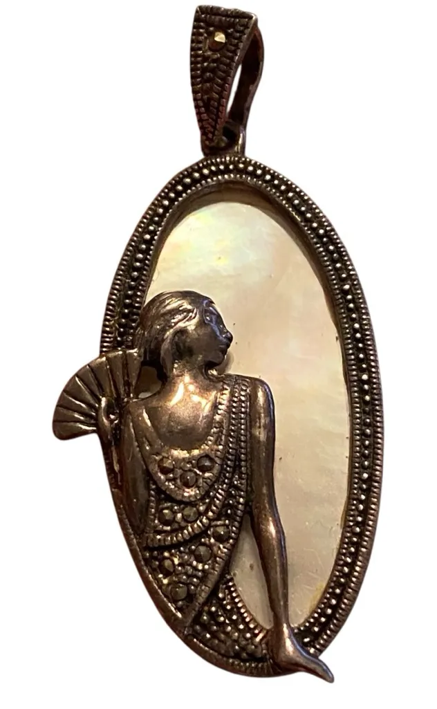 Vintage Art Deco Sterling SilverLady Flapper Pendant Mother of Pearl Marcasite Silver - $69 - From Jenns