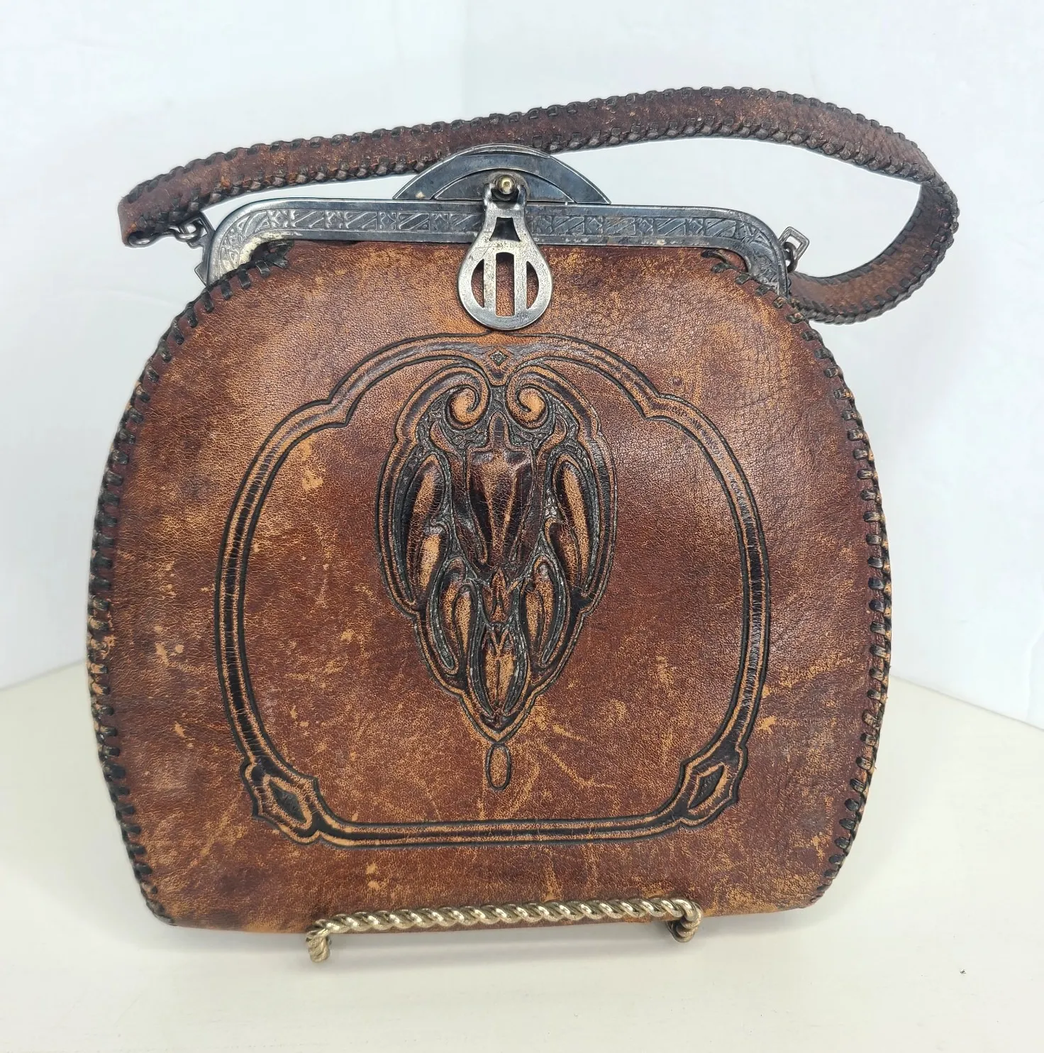 Vintage Art Nouveau Deco Flower Floral Tooled Brown Leather Purse Good pre-owned condition. Modera... Show more