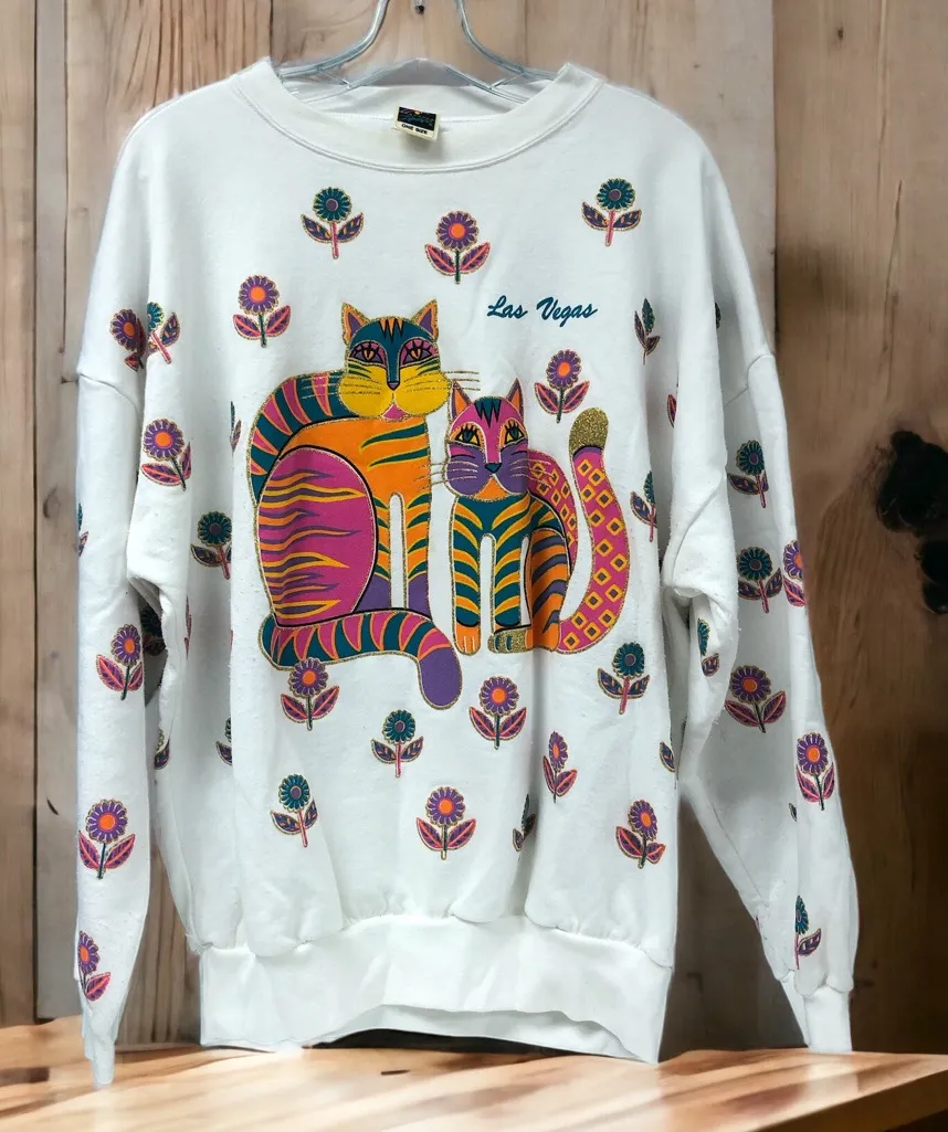 Vintage Art Paint all over cats and daisies gold colorful women’s sweatshirt‎ OS Pink Size L - $47 - From Diana