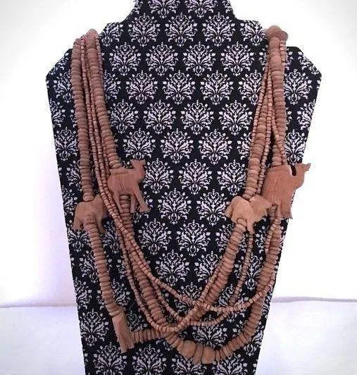 Excellent preloved condition - Artisan Wood Bead 5 Strand Carved Animal Bead Necklace Unique 5 Stra... Show more