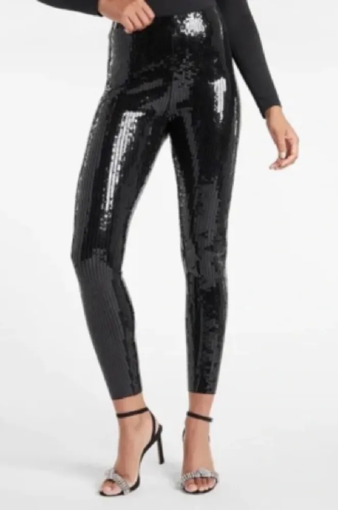 Dazzle in these glamorous black sequin leggings, perfect for any special occasion. Add a touch of sparkle to your wardrobe. Great vintage condition, no found flaws Pull on style, stretchy elastic waistband Smoke free home