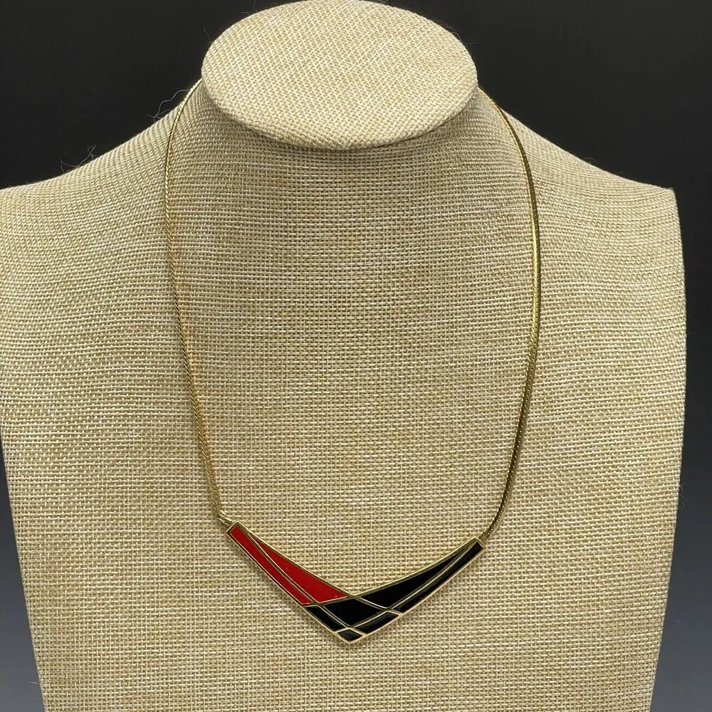 Vintage Avon Gold-Tone Enamel Bib‎ Necklace Boomerang 1980's - $13 - From C