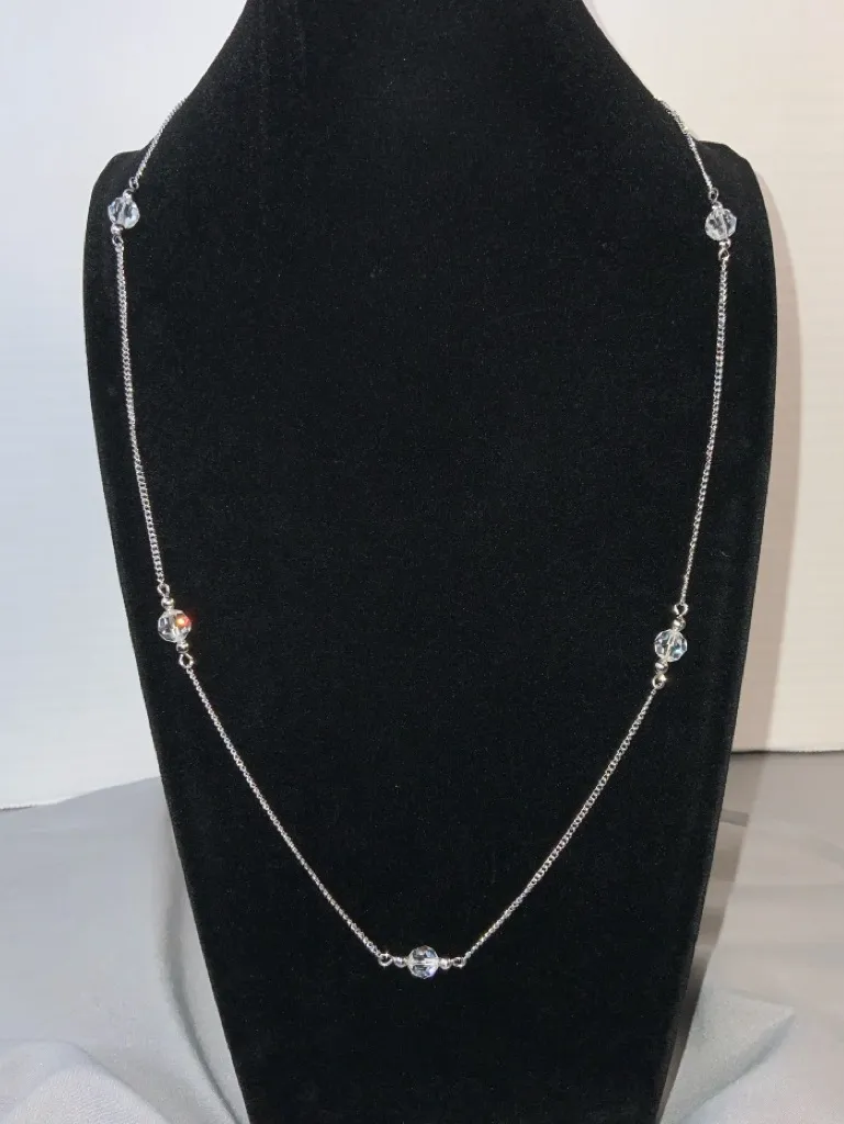 Vintage Avon lead crystal bead station necklace Silvertone chain with clear faceted lead crystal be... Show more