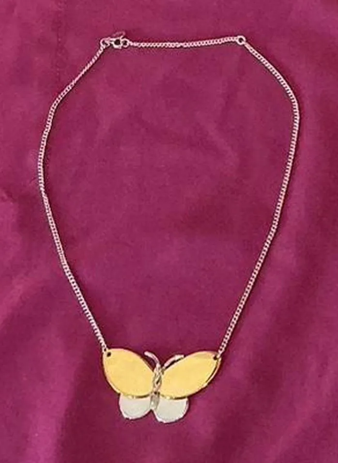 Vintage Avon mixed metal two tone silver gold butterfly pendant choker necklace - $28 - From Kara