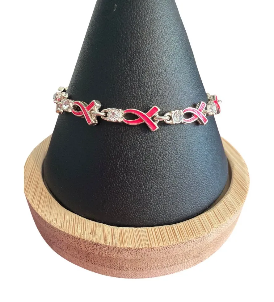 Show your support with this elegant pink ribbon bracelet adorned with sparkling rhinestones. Perfect... Show more