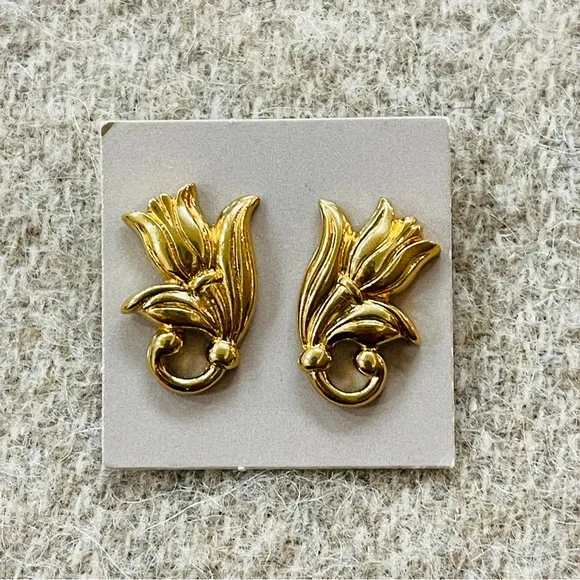 Vintage Avon Spring Flowers Earrings Gold Tone Tulips Surgical Steel Posts NWT - $19 New With Tags - From Annaspace