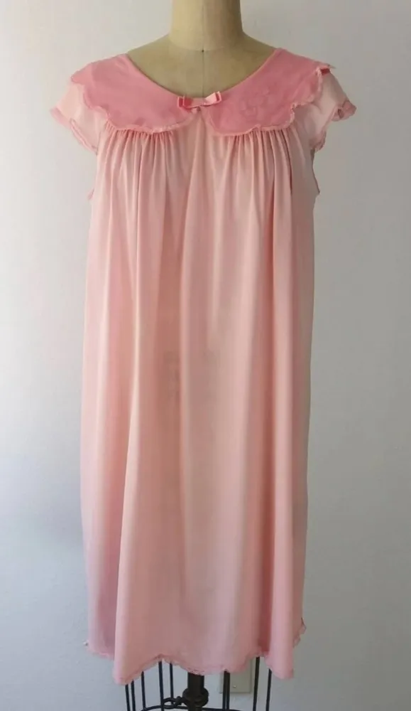 Brand: Shadowline Description: beautiful vintage nightgown. Lightweight. Lace on the trim and a beautiful subtle flower embroidered. Pullover. Cute bow. No flaws found! Next day shipping!! Measurements taken with the item laying flat Size Small P2P 21” Length shoulder to bottom 39.5” Photos are taken under lighting which may cause a variant in color. Please understand every attempt is made to capture true and accurate color. If available, a stock photo may be provided in the photos. Thanks for checking out my closet! Tags: Vintage designers retro sleep coquette ruffle collar lace cap sleeve maxi pink babydoll H7