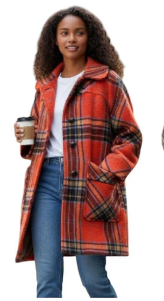 Beautiful mid-century tartan car coat from Baron Woolen Mills (Brigham City, Utah). Made from a warm and durable 70% wool / 30% nylon blend in a rich red, rust, black, and gold plaid. Features a button-front closure, two oversized flap pockets, and a clean A-line silhouette. Perfect for fall and winter, cottagecore, classic Americana, or wool coat collectors. Features: • Brand: Baron Woolen Mills • Vintage 1960s/70s • Women’s Size 8 • Red tartan plaid • 70% Wool / 30% Nylon • Button-front • Two large flap pockets • Mid-thigh car coat length • Warm, thick, structured wool • Made in USA Measurements are approximate laying flat Chest: Armpit to Armpit 20" Sleeve: Armpit to Cuff 16.5" Length: Back Collar Seam to Hem 34" Excellent pre-owned condition *AI generated images are for styling inspiration only. Refer to flat lays for details relevant to patterns, buttons, etc.