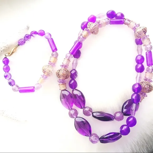 Artisan Beaded Necklace & Bracelet Set Purple & Gold Necklace/Bracelet Set Purple & gold Stunning a... Show more