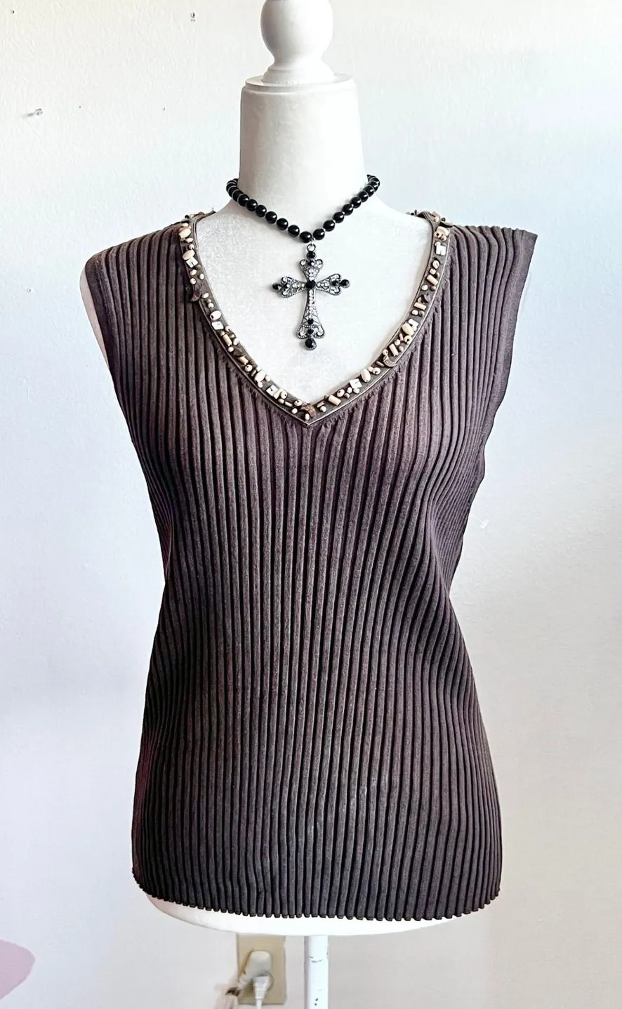 Vintage Beaded Tank Top Y2K 2000s Western Festival Coachella XL Brown - $30 - From Kenia