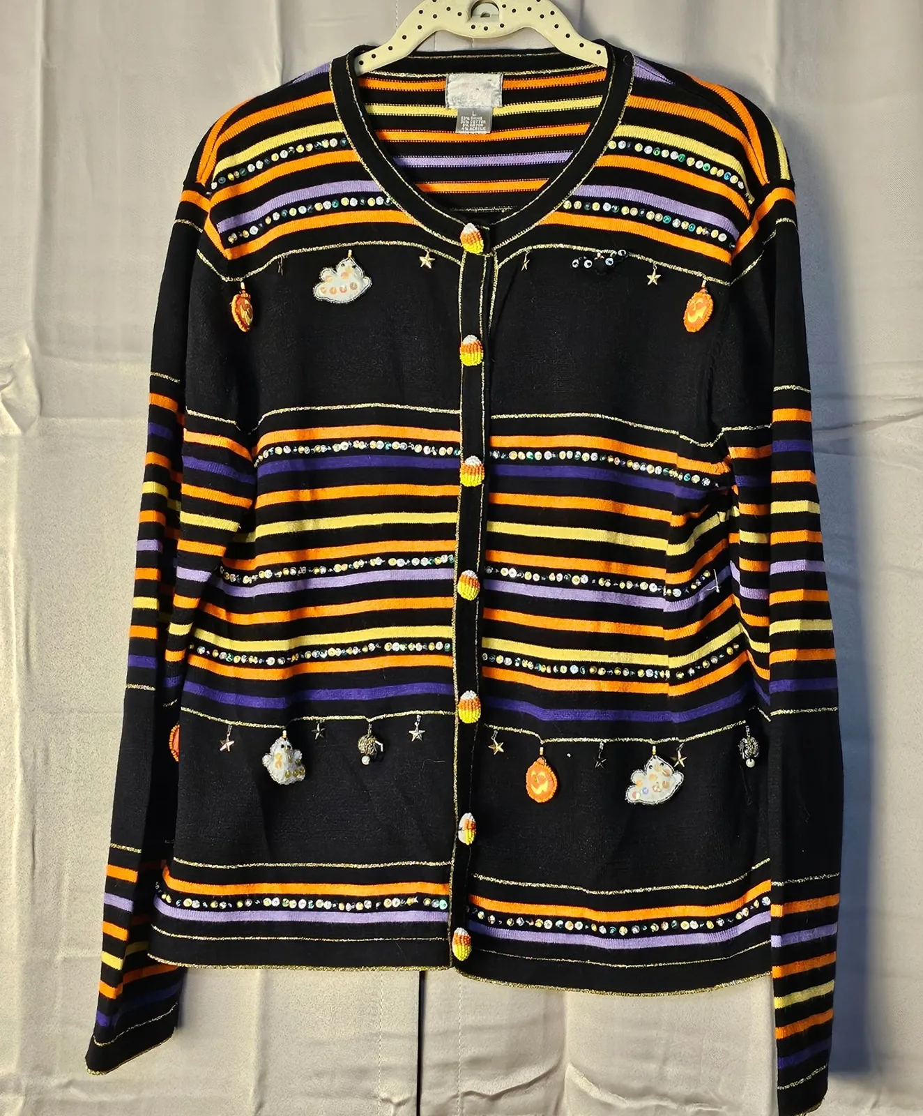 Vintageā€Ž Berek Black Orange Striped Embellished Halloween Cardigan Sweater Large - $54 - From Pamela