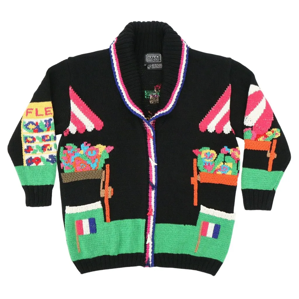 Vintage Berek Hand Knitted by Marta D 1989 Paris France Cardigan Sweater Size: Medium Eiffel towe... Show more