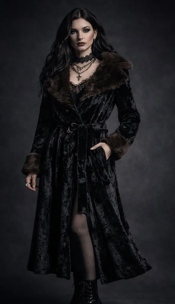 Stunning vintage Betty Rose long black plush velvet coat with rich brown faux fur collar and cuffs. This piece is a classic mid-century inspired silhouette featuring a double-breasted front, dramatic wide collar, and matching tie belt for a flattering cinched waist. Fully lined with beautiful movement and sheen. Rare and highly collectible. Features: • Black crushed velvet plush body • Brown faux fur oversized collar and cuffs • Double-breasted button front (decorative textured vintage buttons) • Longline silhouette • Removable matching belt • Fully lined • Two front pockets • Timeless 60s/70s glam aesthetic Measurements: • Length: approx 41 in • Sleeve length: approx 23 in • Pit to pit: approx 20 in • Shoulder estimate: approx 16–17 in (typical for this brand and cut) • Belt: included Condition: Excellent vintage condition with expected light signs of age. No major flaws noted. Clean, beautiful piece ready to wear. Tag: Betty Rose Professionally clean only This coat is perfect for winter events, vintage styling, photoshoots, and collectors of classic retro outerwear. vintage coat, faux fur coat, velvet coat, 60s coat, 70s coat, glam coat, long coat, retro outerwear, winter coat, belted coat, plush velvet, vintage fashion, mod style, Hollywood glam, dark academia, boho winter, vintage fur trim