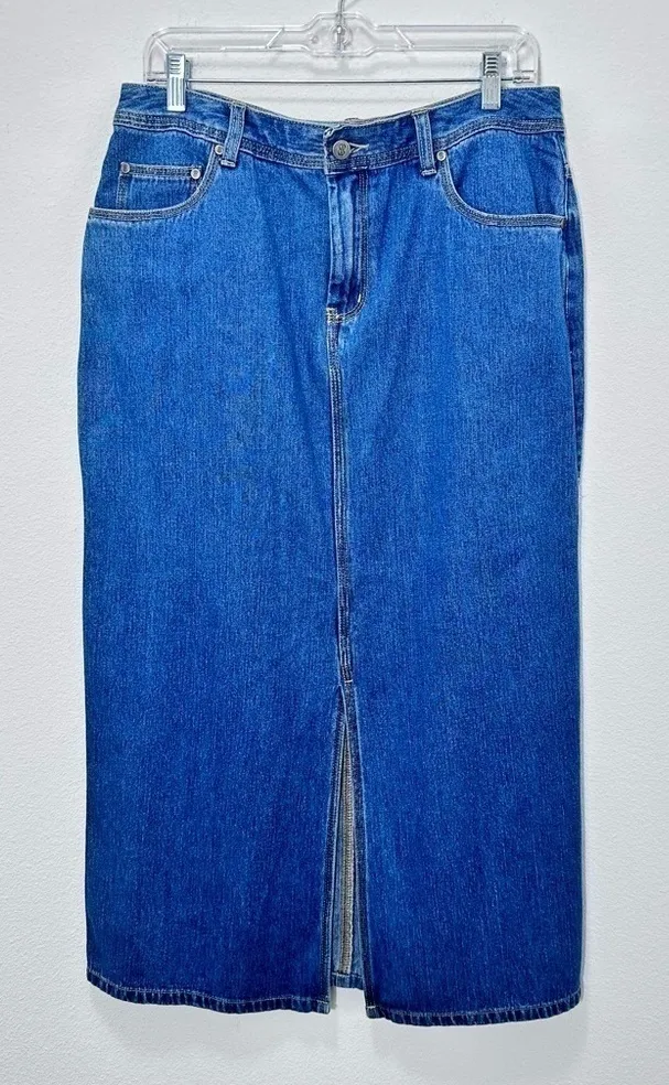Vintage Bill Blass 90s Y2K Midi Maxi Jean Skirt Denim Skirt Front Slit Size 12 Pre-Owned in Great Co... Show more