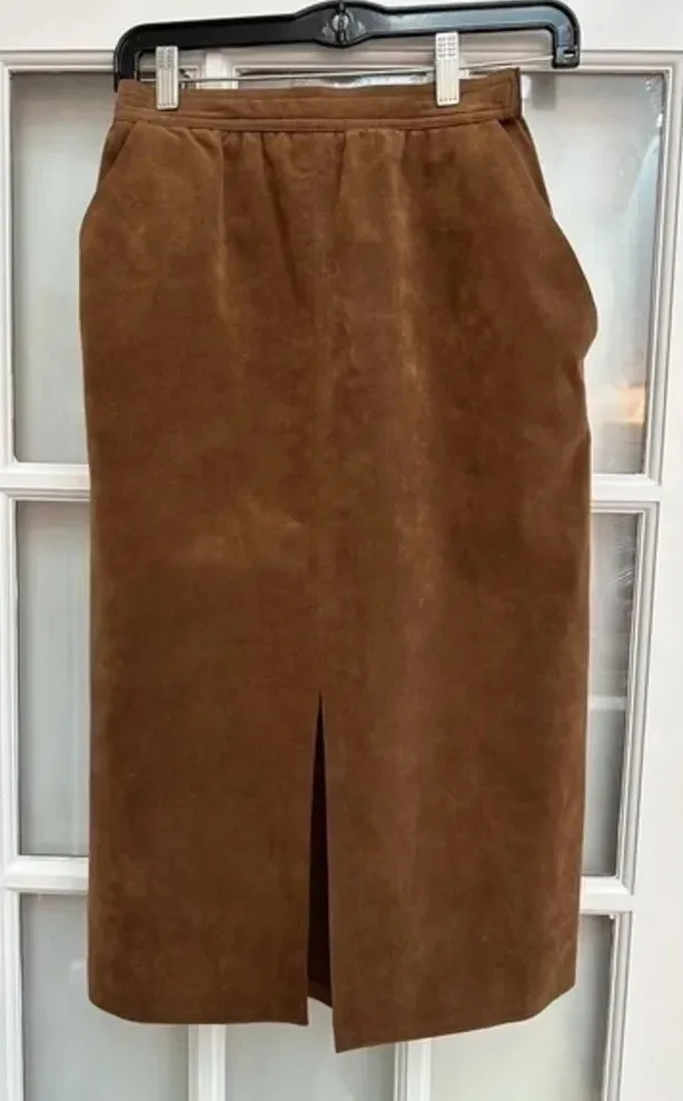 Bill Blass | Vintage Blassport Suede Pencil Skirt Size 6 EXCELLENT condition. Vintage Blassport suede skirt by Bill Blass. Slit in the front, pockets, brown gorgeous ultra suede. All hardware intact. Side zip closure. Smoke free home
