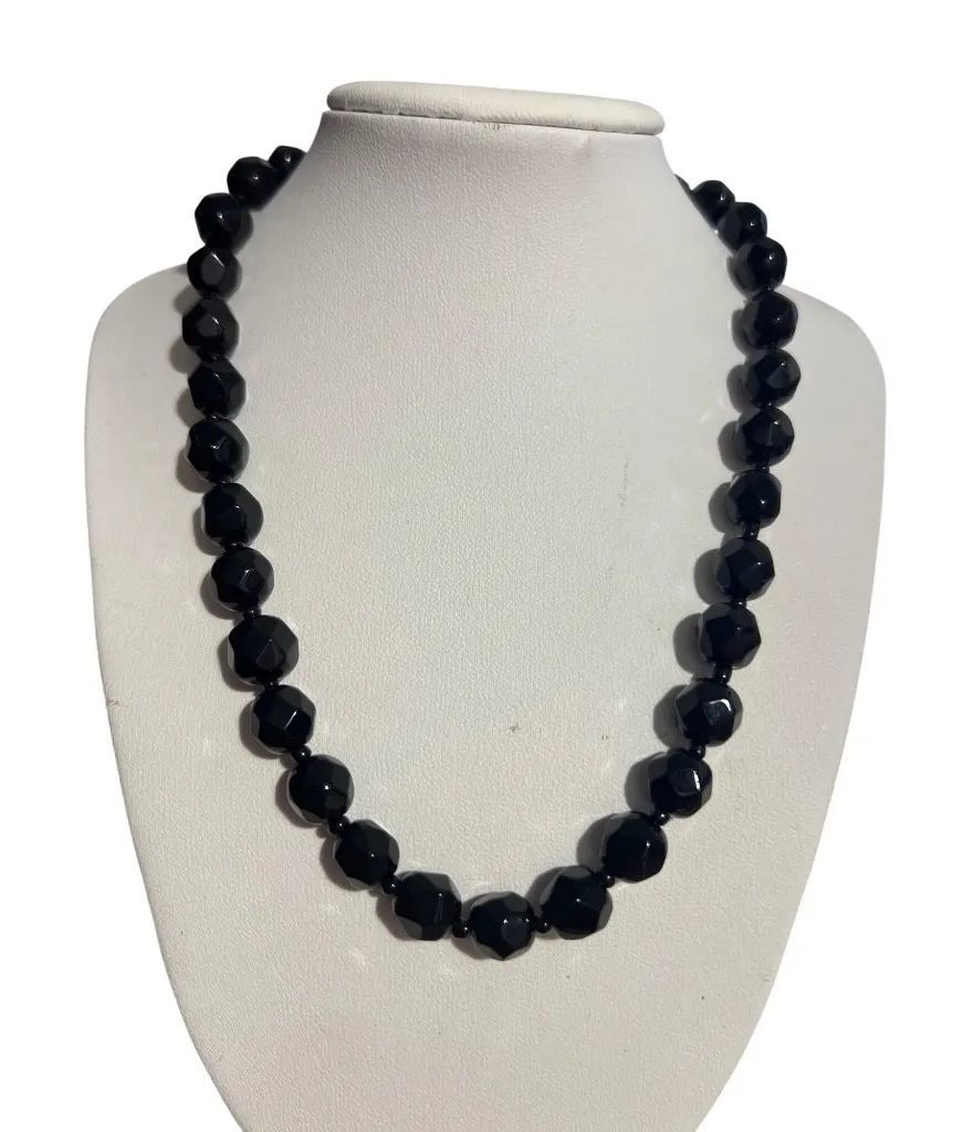 This exquisite vintage necklace features a stunning black faceted onyx design, adjustable up to 18.5... Show more