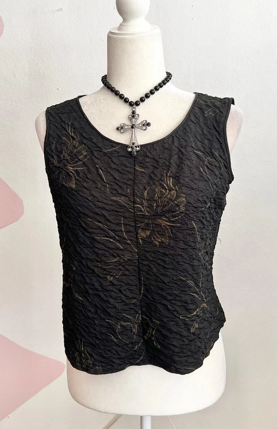 Vintage Black Floral Textured Tank Top 90s Grunge Y2K 2000s Whimsigoth Large - $25 - From Kenia