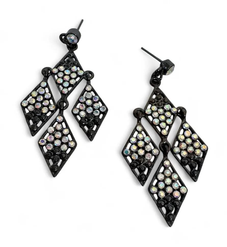 Vintage Black Metal Aurora Borealis Crystal Chandelier Earrings Women’s Jewelry - $28 - From Lisa