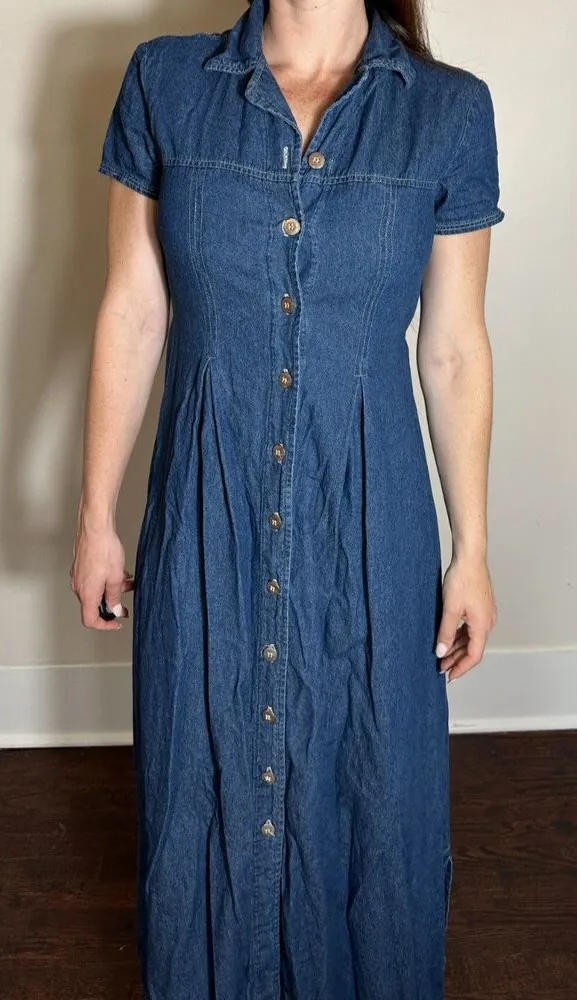 Vintage Blue 100% Cotton Made in USA Denim Maxi Dress Size 4 - $38 - From Thrifted